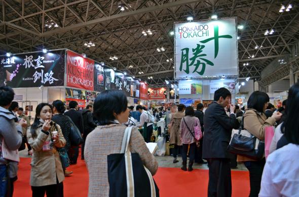 ただ見学するのではなく、自分たちの農園の商品をいかに商売に結びつけるか?そのヒントを学びます。例えば寺山さんは某有名小売店のバイヤーさんを見つけて、その動向をチェックしていました。試食をして、何かを尋ねているバイヤーさんの側で、それとなく話を聞く寺山さん。まるで凄腕探偵のよう!? また、出展ブースでは商品紹介の小冊子を手に取り、「商品の表示なども勉強になるので」と、熱心に見学を続けます。