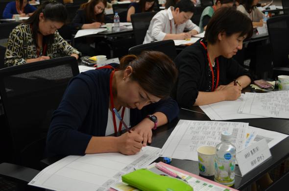 和やかな自己紹介タイムとは打って変わって、真剣な面持ちでメモを取ります。