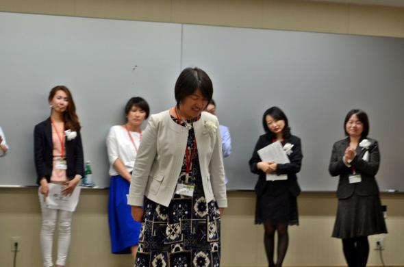 これまで米作りに専念してきたこともあり、まずは「自分に技術をつけたい」。そして来年からトマトの栽培をスタートしていくつもりだそうです。「家族5人が笑って生きていけるように、子どもたちの笑顔を守っていけるように」と宣言に付け加えた後は、なんと見事な側転を披露! 会場が笑顔と拍手で包まれました!た一言に、松本さんの心の強さが現れていました!