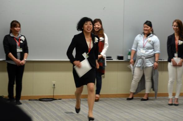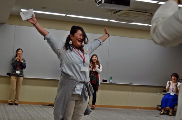 お客様がいる限り農業は続けると心に決めてやってきたという長沼さんですが、今後の事業はというと「私の農地では規模拡大は測れない」と冷静で、「私達の思い入れを理解してもらえるようなお客様に届けたい」と、品質もお客様もグレードアップさせる計画です。勢い良くラインを飛び越えて、仲間たちの拍手を浴びました!
