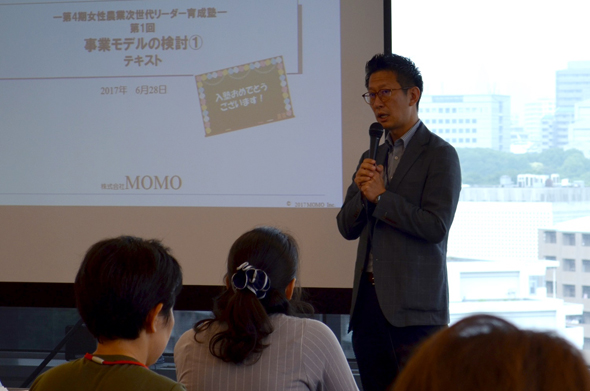 「女性農業次世代リーダー育成塾」第4期生35名による自己紹介(【前編】 【後編】)を終え、いよいよ講義がスタート。箱崎浩大講師は、講義の概要と心構えを語り始めました。