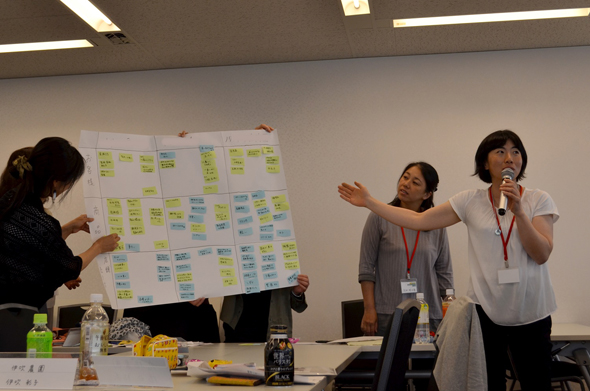 みなさん、刺激的な体験でたくさんの気づきがあった模様。あっという間にポストイットがいっぱい!「世代によって求められている製品は違う」などさまざまな気付きがあったよう。次回のヒルズマルシェ出店に生かせるといいですね!