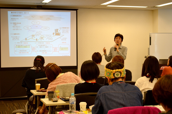 現在、事業の見直しを行っている育成塾のみなさん。それと並行して学んでいるのが「事業計画づくり」。計画づくりのコツは、「短期」、「中期」、「長期」と、期間を分けて考えること。今回は3年で区切って考える「中期計画」についてじっくり学びます。