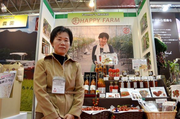 農業を魅力的な仕事にしたいという思いが募り、育成塾に参加した林田さんは、結婚して就農し、もうすぐ20年。展示会にはよく出展するという林田さんのブースは、さすがにこなれた印象で、スタイリッシュ。