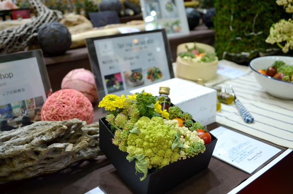 昨年から始めた展示会への出展。今回のブースには「この6年の集大成を見せたい」という思いを込め、花屋で働いていたご主人が手がける野菜のアレンジメントをメインにディスプレイしました。3年間から始めたという野菜のアレンジは、飲食店や結婚式でのニーズが多いそう。フォトジェニックな仕上がりに、たくさんの人が立ち止まって写真を撮っていました。