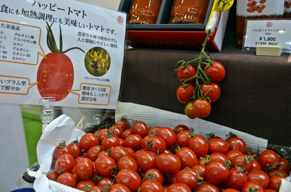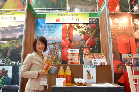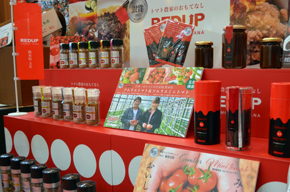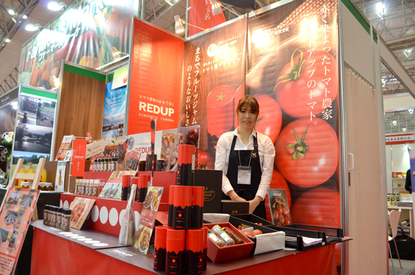 ブース作りで心がけたことは、人の目線の高さに合わせることと、「何を売りたいか」を明確にすること。なるべくBtoBでやっていきたいそうで、そんな思いも込められています。トマトの加工品に加え、生産している青果も並べ、レッドアップという会社のブランディングも意識しての出展です。