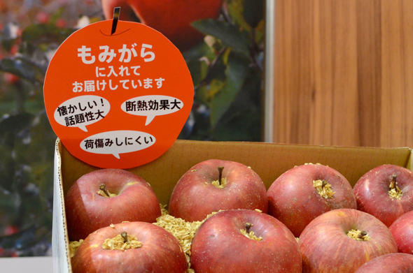 もともとデザイン関係の仕事だった善積さん。初出展ということもあり「準備が間に合わないぐらいでした!」と、ブースづくりには苦労したそう。現状の取引は9割がBtoC。リンゴの木も育ってきて収穫量も増えるので、BtoBのお取引先を見つけたいと、初出展しました。