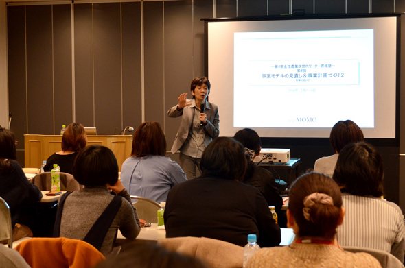 出展しないメンバーは視察に加え、別室で「事業モデルの見直し&事業計画づくり」の講義を受講。事業モデルシートにさらに踏み込み、単年計画の詳細についてグループワークを実施しました。