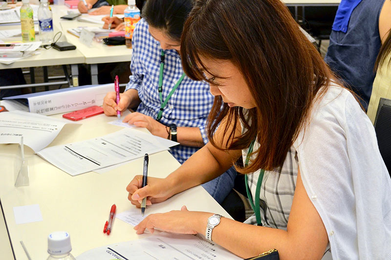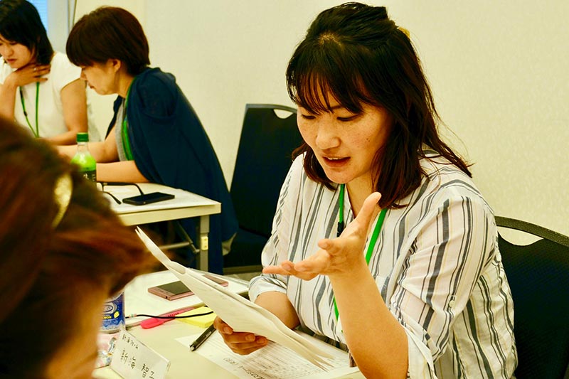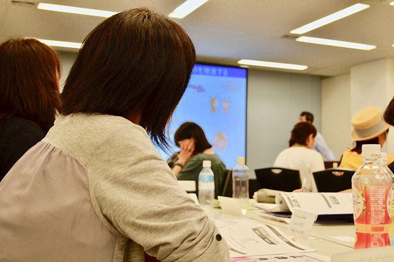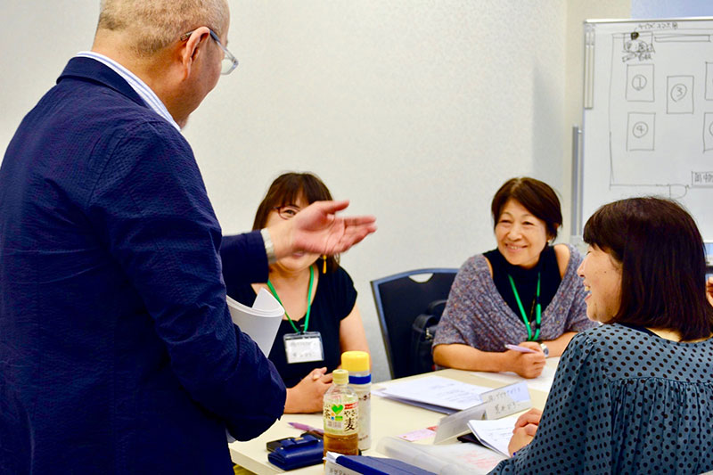 単に講師から教えを受けるだけでなく、ワークを重ねる意図について、金子先生は「得た知識を自分の状況にどう活かすか、落とし込んで考えることが大切だから」と解説。「座学で聞いているだけだと、結局は退屈だからね(笑)」と、ワーク中の塾生に、実践的なアドバイスをどんどん行っています。