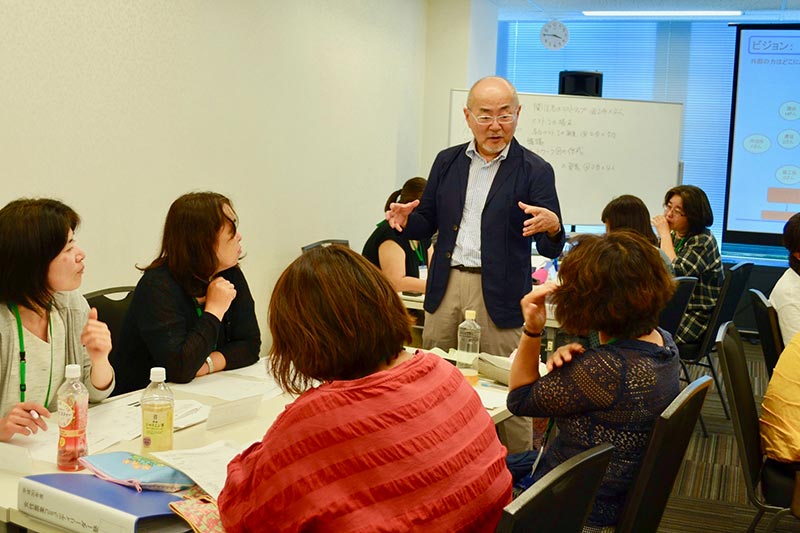 8月22日、23日に行われた第2回研修。金子和夫先生の講義テーマは「多様な関係者を巻き込むには?」。自分たちのビジョンに沿って、周囲の利害関係者を認識し、巻き込む方法を学びます。