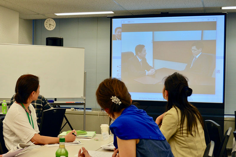 このあとは、深代先生の、ヒューマンスキル講座。今回は「多様な関係者を巻き込むためヒューマンスキル」として、話す相手のタイプ別に、「ダメな事例」と「改善事例」の動画を見ながら、意見を出し合いました。