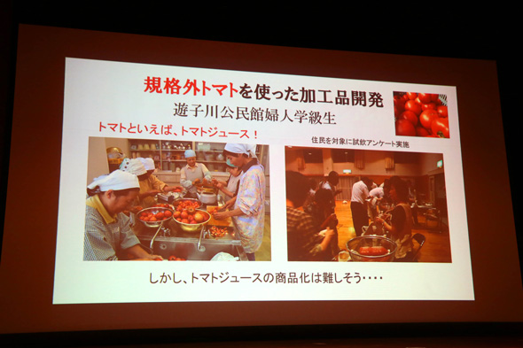 仲間に話したところ、「加工品の開発なら、他の農家さんとも連携した方がいいよね」ということで、もりあげ隊の「産業部」という部署にいた女性農家さんたちと開発をはじめたそうです。まず思いついたのは「トマトジュース」。しかし、競合はたくさんあり「もう遅い」という指摘も。
