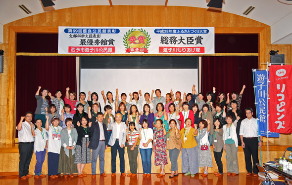 遊子川もりあげ隊の取り組みは、平成28年度には年間約4000人の交流人口を獲得。地域一丸となった取り組みが評価されて、同年度の「ふるさとづくり大賞 団体表彰(総務大臣賞)」を受賞。また、「第69回全国優良公民館賞表彰 最優秀館受賞(文部科学大臣賞)」などの功績もあり、その功績が住民の活気とやりがいにも繋がっています。