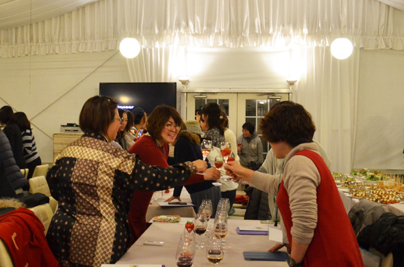 懇親会ではココ・ファーム・ワイナリーの6種類のワインで乾杯!