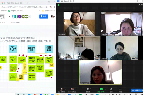 その結果をもとに、今回のワークショップでさらにアイデアを広げ、整理していきます。 Googleの「Jamboard(電子ホワイトボード)」とZoomを併用したワークショップの形式にも、みなさんだいぶ慣れてきたようです。